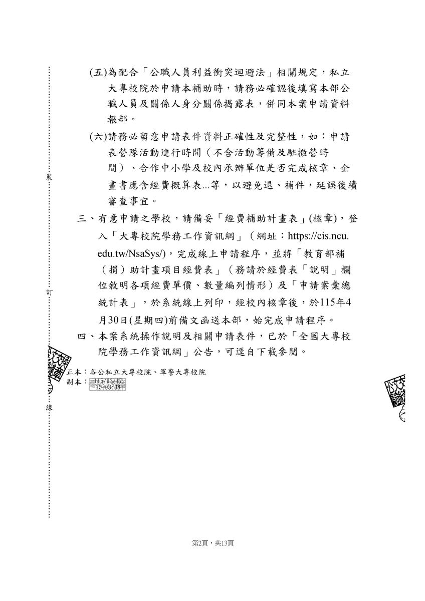 一、依據教育部115年3月17日臺教學(二)字第1152801047號辦理。